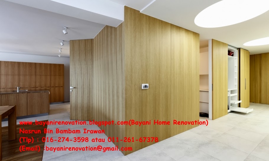 Kayu menambah rasa kehangatan. Kawasan bilik tetamu mempunyai dua sofa kain hitam putih dihiasi dengan perincian. Jadual kopi melengkapkan Sebaliknya hiasan dengan sofa gelap. Ini seluruh "seksyen" diletakkan di atas permukaan yang berbentuk segi empat tepat kayu. Bahagian hanya membuka kepada alam sekitar luaran melalui teres yang luas dengan yang hampir sama kayu "permadani". Long langsir gelap menambah rasa privasi apabila diperlukan. Dari segi warna, nuansa hitam, putih, perak dan kayu-seperti yang dominan. Campuran pelik kayu, permukaan lacquered dan keluli tahan karat memberi untuk tempat ini yang rasa moden.